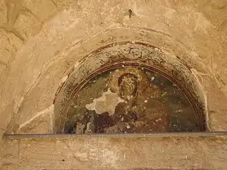 Мозаичный образ Богоматери с младенцем в окружении двух архангелов обрамлен широкой декоративной лентой из тернового меандра, в которую вписаны тринадцать медальонов с ликами двенадцати апостолов и Христа на фоне акантовых листьев. В технике исполнения этой мозаики проявляется линеарный стиль с использованием крупных смальтовых кубиков, сближающий её со знаменитыми ранневизантийскими мозаиками церкви Святого Виталия в Равенне. Здесь наблюдается переход от классических античных традиций к новым, оригинальным приемам исполнения византийской мозаики, стремящимся к симметричности и строгой схематизации (как, например, в монастыре Святое Екатерине на Синае). В период иконоборчества мозаика, по-видимому, была заштукатурена и обнаружена вновь только в XX веке. Это мозаика считается самой древней не Кипре мозаикой в апсиде, сохранившейся на своем месте.