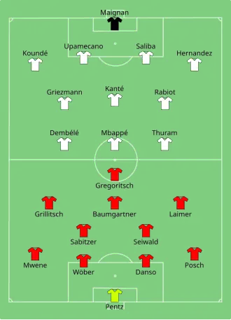- 1 2 3 Tactical Line-ups – Austria v France (англ.). UEFA.com. Union of European Football Associations (17 июня 2024). Дата обращения: 17 июня 2024. Архивировано 17 июня 2024 года.