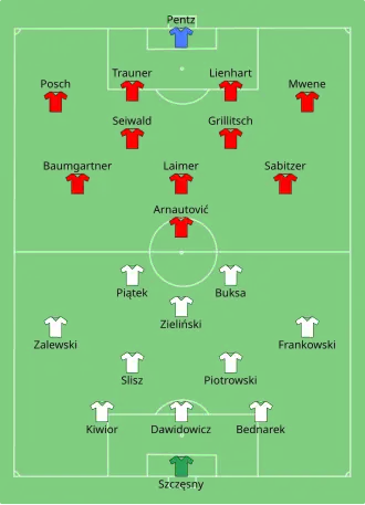 - 1 2 3 Tactical Line-ups – Poland v Austria (англ.). UEFA.com. Union of European Football Associations (21 июня 2024). Дата обращения: 21 июня 2024. Архивировано 7 июля 2024 года.