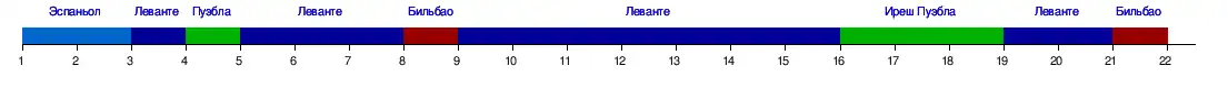 | Леванте | 4 | 2 | 1 | 3 | 1 | 1 | 1 | 4 | 1 | 1 | 1 | 1 | 1 | 1 | 1 | 2 | 2 | 2 | 1 | 1 | 1 | 2 |