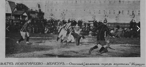 Весной 1916 года Москву посетил клуб «Меркур» — действующий чемпион Петроградской футбольной лиги (представленный, правда, не в сильнейшем составе — отсутствовали несколько основных игроков, в том числе сильнейший форвард Дмитрий Киселев). В игре «на встречных курсах» с практически равным по классу соперником новогиреевцы сумели, в отличие от футболистов «Меркура», удачно реализовать все созданные моменты и победить с разгромным счетом[19].