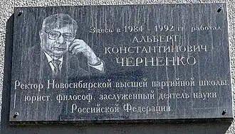 Мемориальная доска А. К. Черненко установлена в Новосибирске на здании НГАХА, Красный проспект, 38.