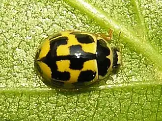 Четырнадцатито́чечная коро́вка[1] (лат. Propylea quatuordecimpunctata) — жук из семейства божьих коровок (лат. Coccinellidae). Питается тлёй, белокрылками, кокцидовыми, а также личинками и яйцами некоторых жуков и бабочек.[2] Самка откладывает около 400 яиц, однако среди личинок высокая смертность. Зимует дважды.