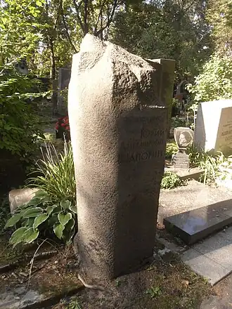 Умер 9 декабря 1966 года в Москве. Похоронен на Новодевичьем кладбище (участок № 6; надгробие — скульптор Д. М. Шаховской, архитектор В. М. Новосадов[6]).