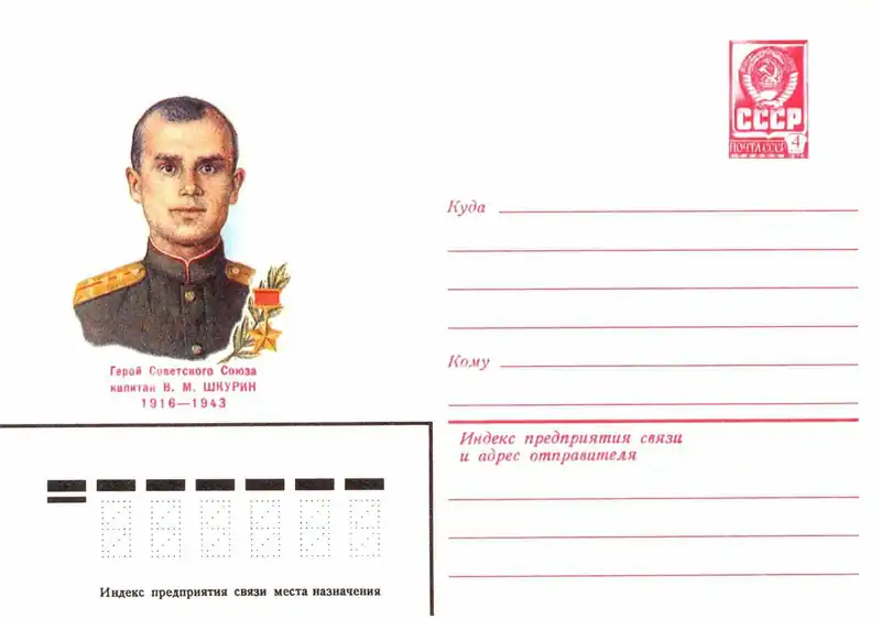| Портрет В. М. Шкурина на художественном маркированном конверте СССР, 1982г. | |