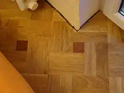 - Хорошее звукопоглощение и звукоизоляция. Штучный паркет крепится к стяжке (влагостойкой фанере или черновому полу) и при ходьбе не создаёт специфического для ламината или паркетной доски звука.