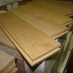 Изготавливается как из традиционных пород дерева — дуб, ясень, клён, так и из экзотических — мербау, железное дерево, палисандр и др.