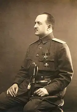 Высочайшим Приказом от 4 июля 1916 года награждён Георгиевским оружием за бой 31 июля 1915 года под Коварском[2][3].