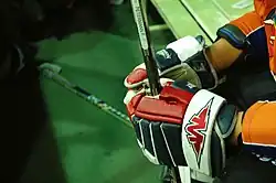 | Перчатки (краги) | Особые перчатки, защищающие кисти рук, кистевые суставы и нижнюю часть предплечий игрока при ударах клюшкой по рукам, попаданиях шайбы или мяча, и в других подобных случаях. Особенности конструкции хоккейных краг таковы, что они обеспечивают максимальную степень подвижности суставов верхних конечностей для обеспечения эффективной работы клюшкой. | ![]() |
