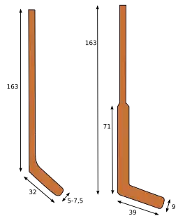 | Вратарская клюшка | Снаряд, с помощью которого вратарь отбивает шайбу (мяч) и/или вводит её в игру | |