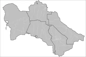 | Эсенкулийский этрап | Гасан-Кулийский | город Эсенгулы | город Эсенгулы; посёлки Гарадепе, Экерем; гегеншлики Аджыяп, Бугдайлы, Гарадегиш, Чалоюк, Чекишлер |