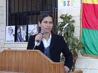 - ↑ Fetah, Vîviyan (2018-07-17). Îlham Ehmed: Dê rêxistinên me li Şamê jî ava bibin. www.rudaw.net (курдск.). Дата обращения: 2019-09-29.