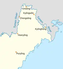 Юкчинский диалект (육진 방언) — один из самых своеобразных и архаичных диалектов корейского языка. Сформировался в XV веке на крайнем севере средневекового корейского государства, в пограничной полосе Юкчин на южном берегу реки Туманган (Туманная). Крепости («чин») Чонсон (вместо Нёнбук), Онсон, Кёнвон, Кёнхын, Пурён, Хверён располагались вдоль среднего и нижнего течения реки Туманган (Туманная) на землях, присоединённых к территории средневековой Кореи в 1434 году, во время правления короля Седжона[1]. Юкчин был освоен с целью защиты от нападений с северо-запада кочевников-чжурчжэней. Само строительство продолжалось почти столетие. В это время регион заселяли в основном семьи военных из Пхеньяна, а потому юкчинский диалект имеет центральнокорейскую основу и непохож на окружающий его хамгёнский диалект. Рядом с корейцами здесь селились и чжурчжэни.