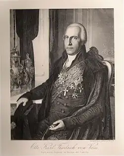 - ↑ Der Adel, was er ursprünglich war, was er jetzt ist, und was er künftig seyn soll: Ein Angebinde zum Geburtstage aller ächtadlichen Herren und Damen insbesondere auch für die Herren von Jena und von Auerstädt (нем.). — Buchdr. G. Hayn, 1808. — S. 77—78.
