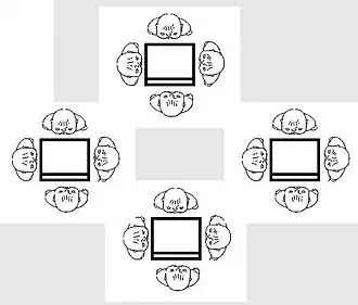 Когда мелодия продолжает звучать без слов, дети перемещаются в общий круг. По окончании музыки они бегут к своим стульям и натягивают платки над стульями в виде юрты.