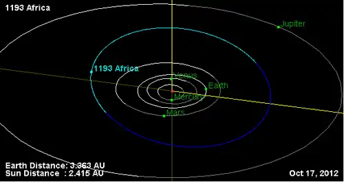 - Орбита астероида Африка и его положение в Солнечной системе