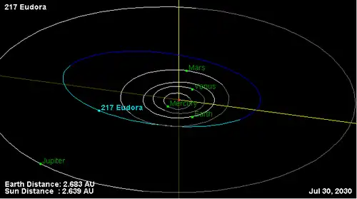 - Орбита астероида Эвдора и его положение в Солнечной системе