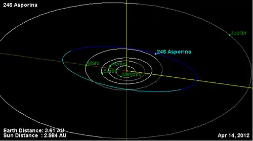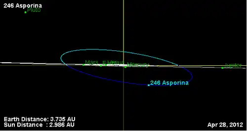 - Орбита астероида Аспорина и его положение в Солнечной системе