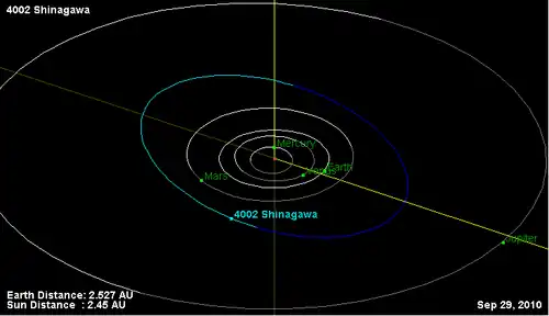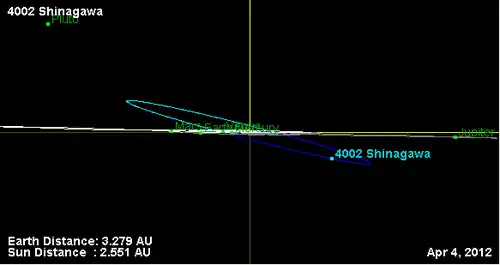 - Орбита астероида Синагава и его положение в Солнечной системе