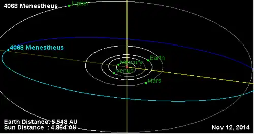 - Орбита астероида Менесфей и его положение в Солнечной системе