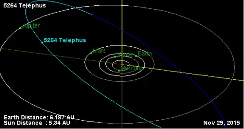 - Орбита астероида Телеф и его положение в Солнечной системе