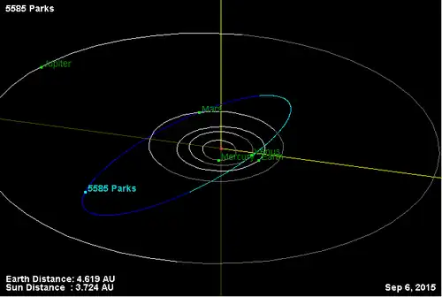 (5585) Паркс (лат. Paulharris) — астероид, относящийся к группе астероидов пересекающих орбиту Марса и принадлежащий к тёмному спектральному классу C. Он был открыт 28 июня 1990 года американским астрономом Элеанор Хелин в Паломарской обсерватории и назван в честь американского инженера Роберта Дж. Паркса (англ. Robert J. Parks)[2].