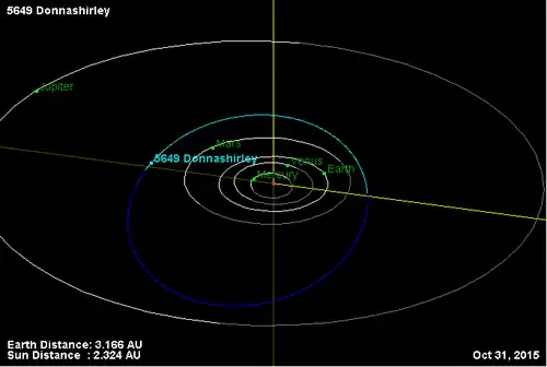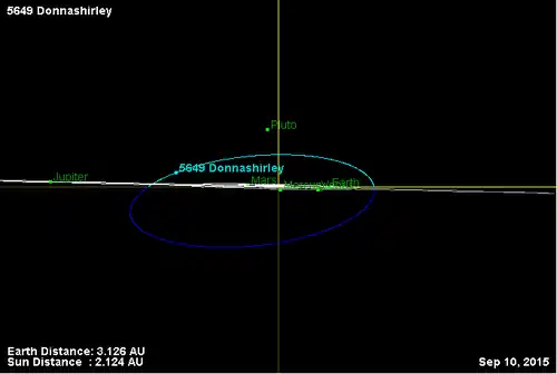 - Орбита астероида Доннаширли и его положение в Солнечной системе