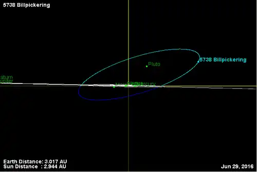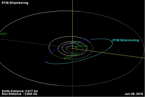- Орбита астероида Биллпикеринг и его положение в Солнечной системе