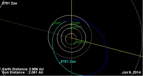 - Орбита астероида Дзао и его положение в Солнечной системе