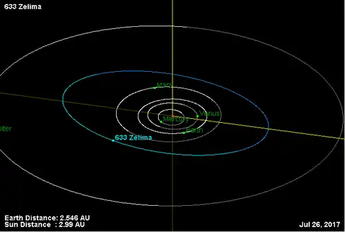 (633) Зелима (лат. Zelima) — астероид главного пояса, который относится к спектральному классу S. Он был открыт 12 мая 1907 года немецким астрономом Августом Копффом в Гейдельбергской обсерватории и назван немецким женским именем Землима, что, возможно, обусловлено временным обозначением астероида[1].
