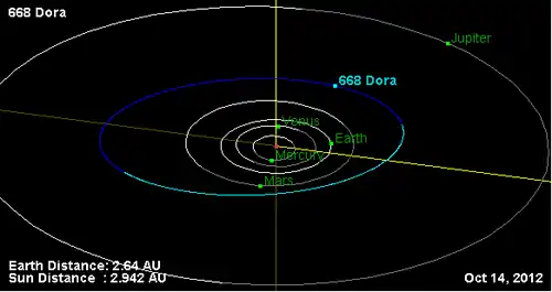 (668) Дора (нем. Dora) — астероид главного пояса, который возглавляет одно из небольших астероидных семейств, получившего название Семейство Доры. Он был обнаружен 27 июля 1908 года германским астрономом Августом Копффом в Гейдельбергской обсерватории и назван в честь подруги жены первооткрывателя[1].
