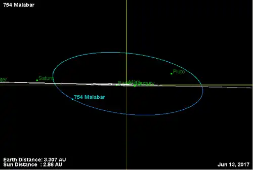 - Орбита астероида Малабар и его положение в Солнечной системе
