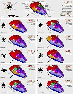 - Werneburg & Abel смоделировали анапсидный череп Captorhinus aguti и, взяв его строение за исходное, предприняли попытку разграничить морфотипы черепов ранних амниот и их ближайших родственников, а также реконструировать челюстную мускулатуру их обладателей[2].