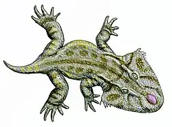 | Termonerpeton[31][32] | Gen. et sp. nov | Clack, Smithson & Ruta | Карбон (визей) | Вулканическая формация Батгейт-Хиллс (Bathgate Hills Volcanic Formation) |
