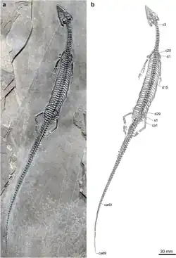 - ↑ Cheng L., Moon B. C., Yan C., Motani R., Jiang D., An Z., Fang Z. The oldest record of Saurosphargiformes (Diapsida) from South China could fill an ecological gap in the Early Triassic biotic recovery (англ.) // PeerJ : journal. — 2022. — Vol. 10. — P. e13569. — ISSN 2167-8359. — doi:10.7717/peerj.13569. — PMID 35855428. Архивировано 22 декабря 2022 года.