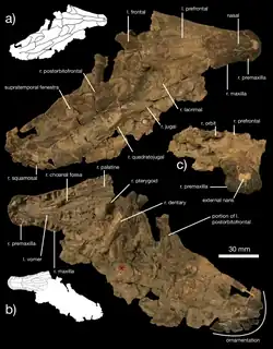 - ↑ Wilson J. D., Wisniewski A., Nesbitt S., Bever G. S. Comparative braincase morphology of Trilophosaurus buettneri and the early evolution of the pan-archosaurian neurocranium (англ.) // Journal of Vertebrate Paleontology : journal. — 2022. — Vol. 42, iss. 1. — P. e2123712. — ISSN 1937-2809. — doi:10.1080/02724634.2022.2123712.