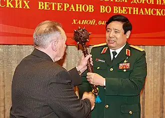 - ↑ Khổng Minh Khánh. Đoàn cựu chiến binh Xô — viết thăm Việt Nam (вьет.) (HTML). Quốc phòng-An ninh. Hà Nội: Báo điện tử Đảng Cộng sản Việt Nam (4 декабря 2012). Дата обращения: 8 февраля 2013. Архивировано 16 февраля 2013 года.