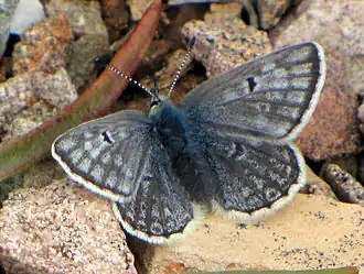 - ↑ Talavera, G. et al. 2013. Establishing criteria for higher-level classification using molecular data: the systematics of Polyommatus blue butterflies (Lepidoptera, Lycaenidae). Cladistics 29(2): 166–192. doi: 10.1111/j.1096-0031.2012.00421.x