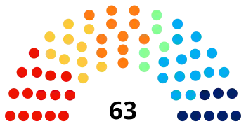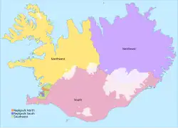 | Юго-западный Suðvesturkjördæmi | 11 | 12 | 12 | 13 | 13 | 13 | 13 | 14 |