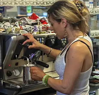 Также иногда бариста (в Италии именно так и есть) может выполнять одновременно обязанности официанта, посудомойщика и уборщика[5][6].