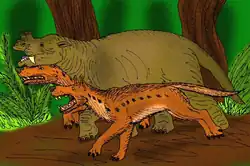 - ↑ S. G. Lucas and R. M. Schoch. (1998). Dinocerata. In C. M. Janis, K. M. Scott, and L. L. Jacobs (eds.), Evolution of Tertiary Mammals of North America 1: 284—291.