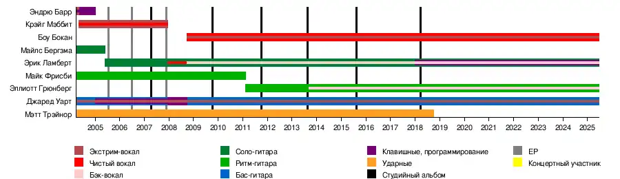 - Эрик Ламберт — соло-гитара (2005—настоящее время), чистый бэк-вокал (2008—настоящее время), музыкальное программирование (2018–настоящее время), чистый вокал (2007—2008)