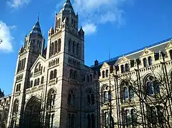 Музей естественной истории[20][21][22][23] или Музей естествознания (англ. Natural History Museum) — один из трёх крупнейших музеев, расположенных на улице Exhibition Road в Южном Кенсингтоне. Коллекция включает в себя более 70 миллионов экспонатов по ботанике (6 млн растений), зоологии (55 млн экземпляров животных, половина из которых это насекомые в отделе энтомологии), минералогии (500 тыс. камней и минералов) и палеонтологии (9 млн ископаемых остатков)[24].