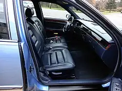 Положение раздельных передних сидений изменялось с помощью электроприводов. Нажатие соответствующих кнопок на двери перемещало сиденье вперёд-назад, вверх-вниз и отдельно поднимало или опускало переднюю или заднюю части подушки. Положение спинки регулировалась вручную, но и здесь, за дополнительную плату, мог быть установлен электрический привод[7]. Также, по заказу сиденье оснащалось электроподогревом. При необходимости, спереди мог разместиться третий пассажир, специально для него был предусмотрен поясной ремень безопасности.