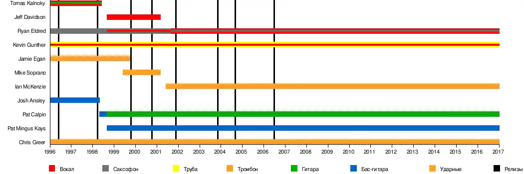 - Kevin Gunther — труба, вокал, бэк-вокал (1996-present)