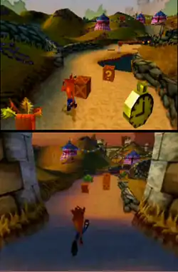 Чтобы вода на соответствующих уровнях выглядела максимально естественной, разработчики наложили на её поверхность карту окружения, отражающую небо[18]. По просьбе продюсеров Sony Computer Entertainment America, Крэшу была добавлена реалистичная тень, которая заменила простой кружок под ним[19]. Чтобы вызвать у игроков «аркадные» впечатления от игры на самолётных уровнях, противники были запрограммированы на заход на игрока в лоб, для того чтобы было достаточно времени среагировать и сбить их[20]. Для мотивации игроков на возвращение в игру после её прохождения была введёна система реликвий, которые выдавались за скоростное прохождение уровней на время[21].