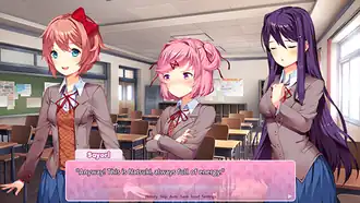 - Если перед началом игры удалить файлы Моники из каталога игры, то активируется «альтернативная» концовка, при которой после нескольких строк диалога появится изображение с повешенной Саёри на белом фоне. Если подождать 10 минут, то рядом с ней появится надпись: «Теперь все могут быть счастливы»[12].