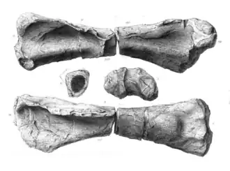 - ↑ Lydekker R. 1888. Catalogue of the Fossil Reptilia and Amphibia in the British Museum (Natural History). Part I. Containing the Orders Ornithosauria, Crocodilia, Dinosauria, Squamata, Rhynchocephalia, and Proterosauria. British Museum (Natural History), London 1—309.