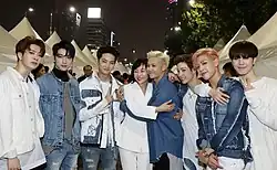 ![]() Got7 в феврале 2018 года в Бангкоке. Слева направо: Югём, Джексон, Бэм-Бэм, Марк, Джей-Би, Ёнджэ и Джинён | |