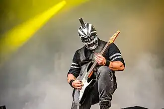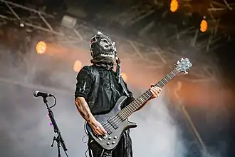 В этот период у басиста была обычная, как и у гитариста, одежда, а вот с маской дела поинтересней. Маска (как и будет в будущем) имеет следующую комплекцию: Форма напоминает мешок, рот завязан и имеются вырезы под глаза. Также есть хвост. Сама маска напоминает маску висельника. У «Юга» в этот период был весьма интересный образ. Футболка с логотипом группы, и однотонная маска хорошо дополняют друг друга (как кажется автору статьи).